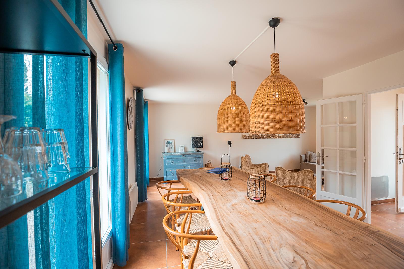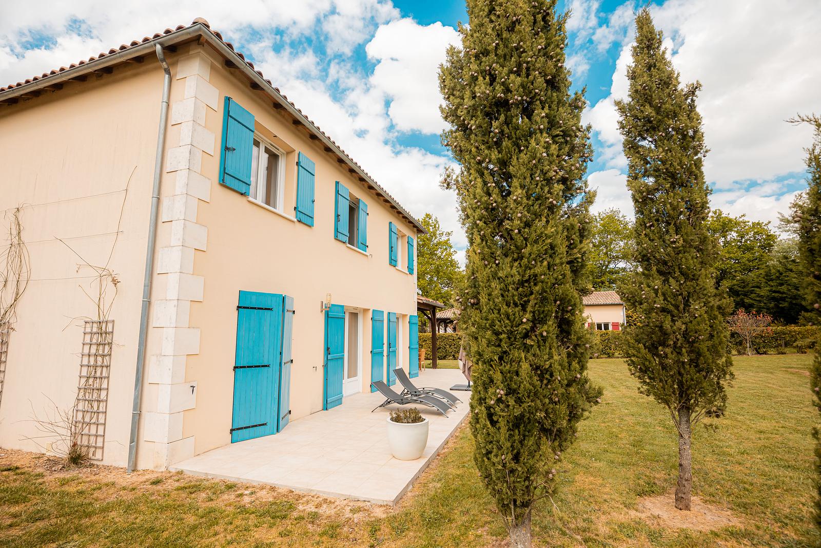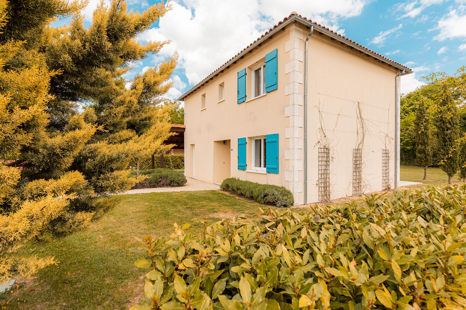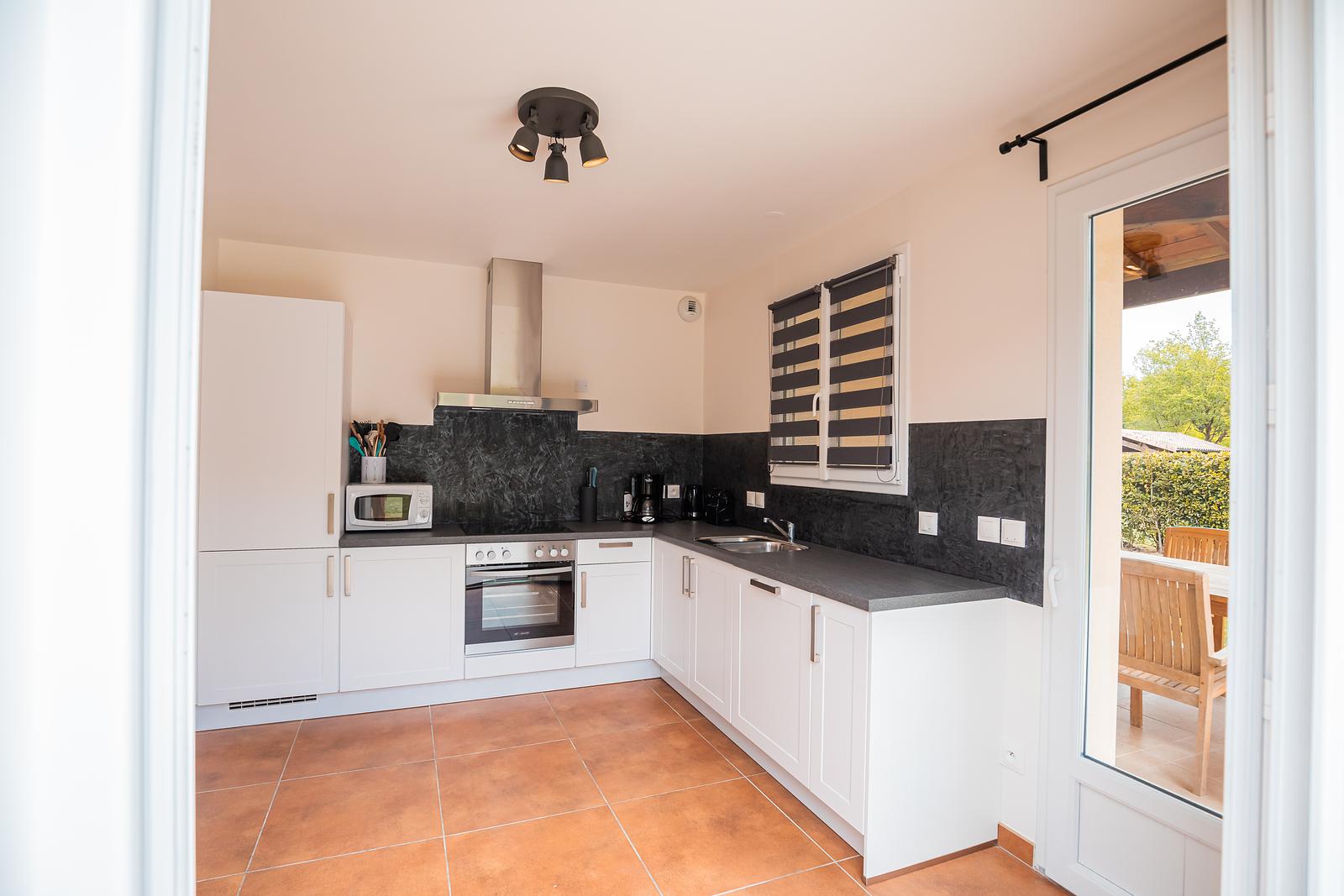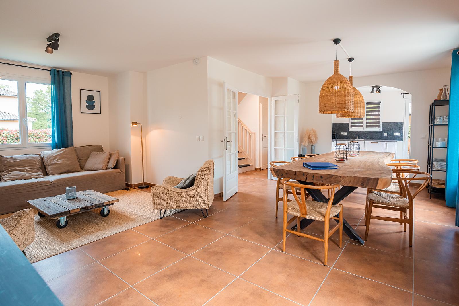 Light, modern and comfortable! The newly built villa of 140 m² with a large garden, spacious terrace with dining area offers peace and tranquility amidst the greenery of the French countryside. The villa has 4 bedrooms, 2 bathrooms and can comfortably accommodate up to 8 guests. The indoor dining area has a large wooden table with 8 chairs. The outside dining area on the terrace has a large table with 8 chairs. The spacious living room is tastefully decorated and filled with lots of natural light. All windows have wooden shutters outside and curtains inside. Parking spaces for several cars are available in front of the house.